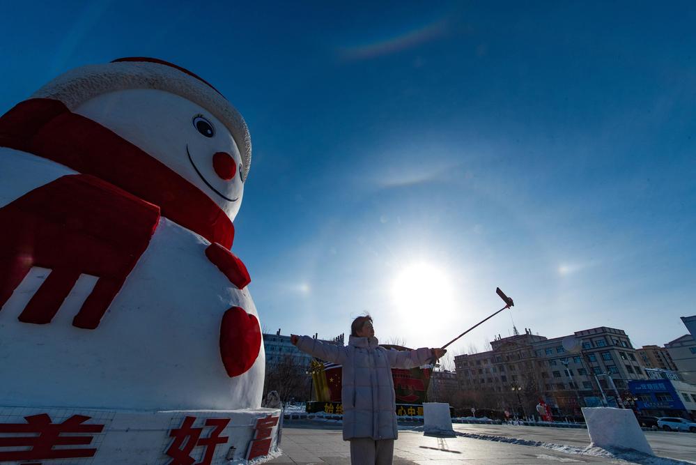 中 헤이룽장성, 곳곳서 빙설 관광객 반기는 대형 눈사람