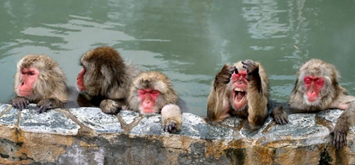 날씨가 추워지자 어떤 원숭이들은 온천에 장시간 몸을 담구고 나오기 싫어한다고 한다. 그들은 온천을 즐기며 하품을 하고 기지개를 펴면서 휴식을 만끽하고 있다고 한다.