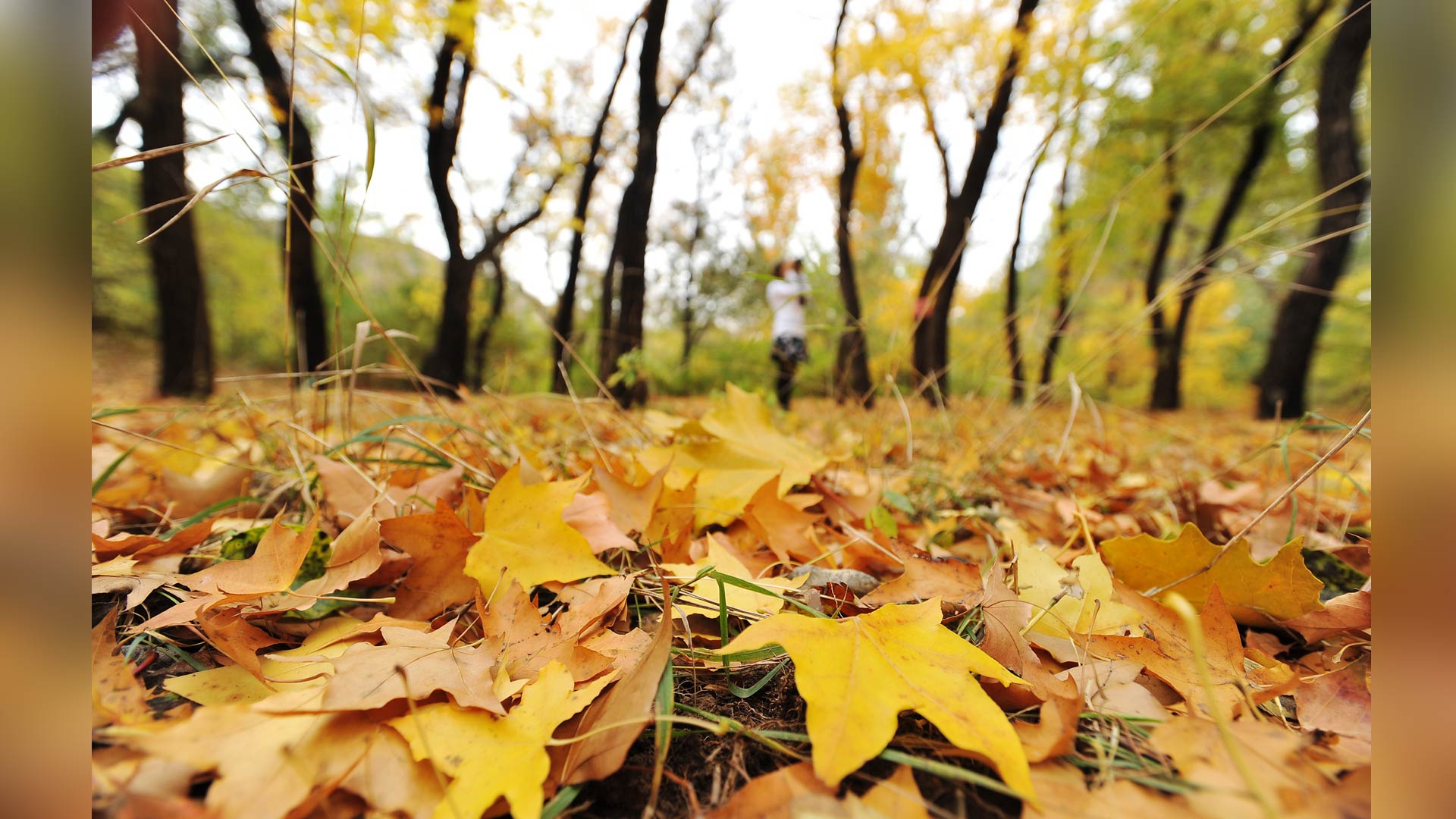 10월 24일, 관광객이 장자커우(張家口)시 쉬안화구(宣化區)에서 단풍을 감상하고 있다.