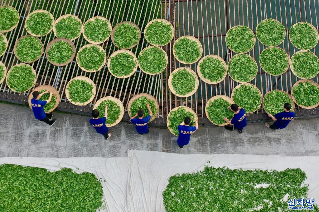 6일 푸젠(福建)성 우이산(武夷山)시 싱춘(星村)진의 한 공장 직원들이 우이암차를 만들고 있다.(드론 사진)