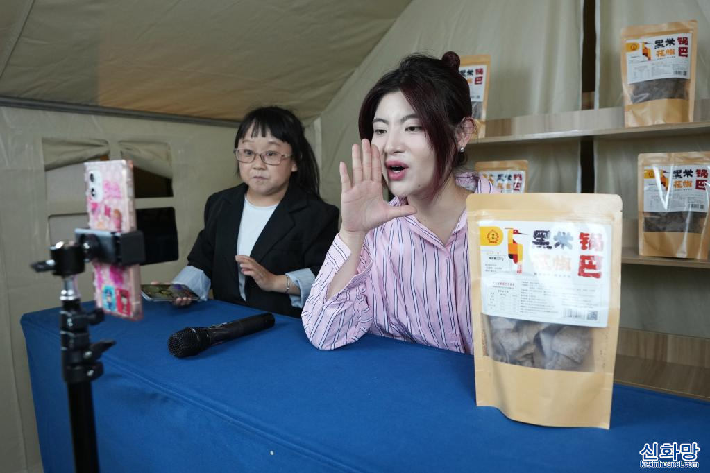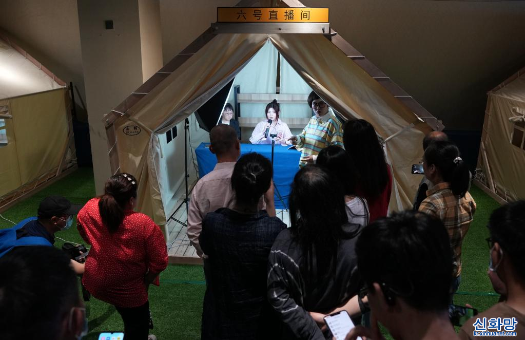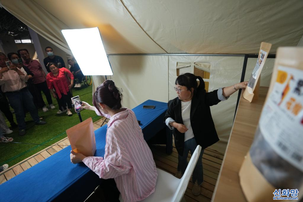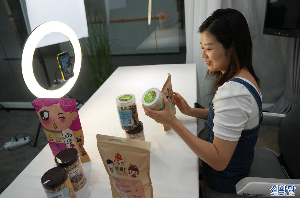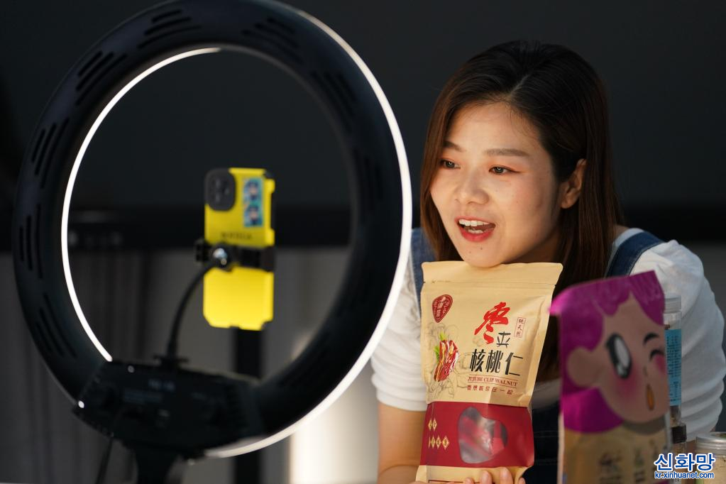 12일 시안(西安)의 한 라이브 방송 산업기지에서 장애인 방송진행자가 실시간 동영상 스트리밍을 통해 상품을 판매하고 있다.
