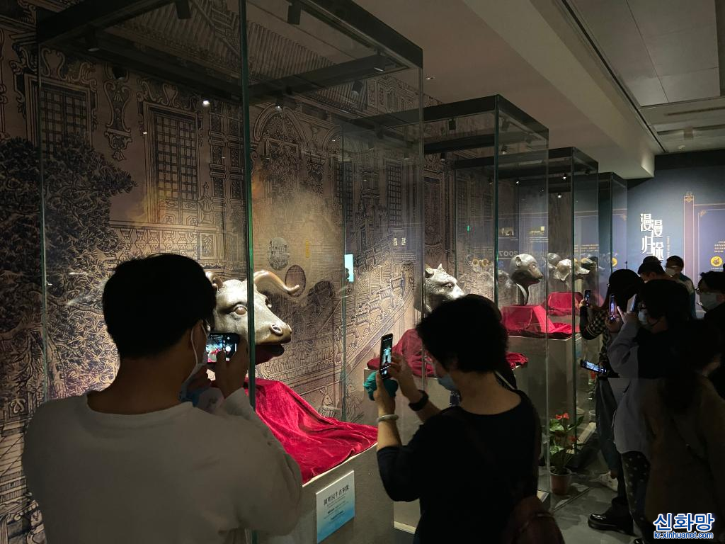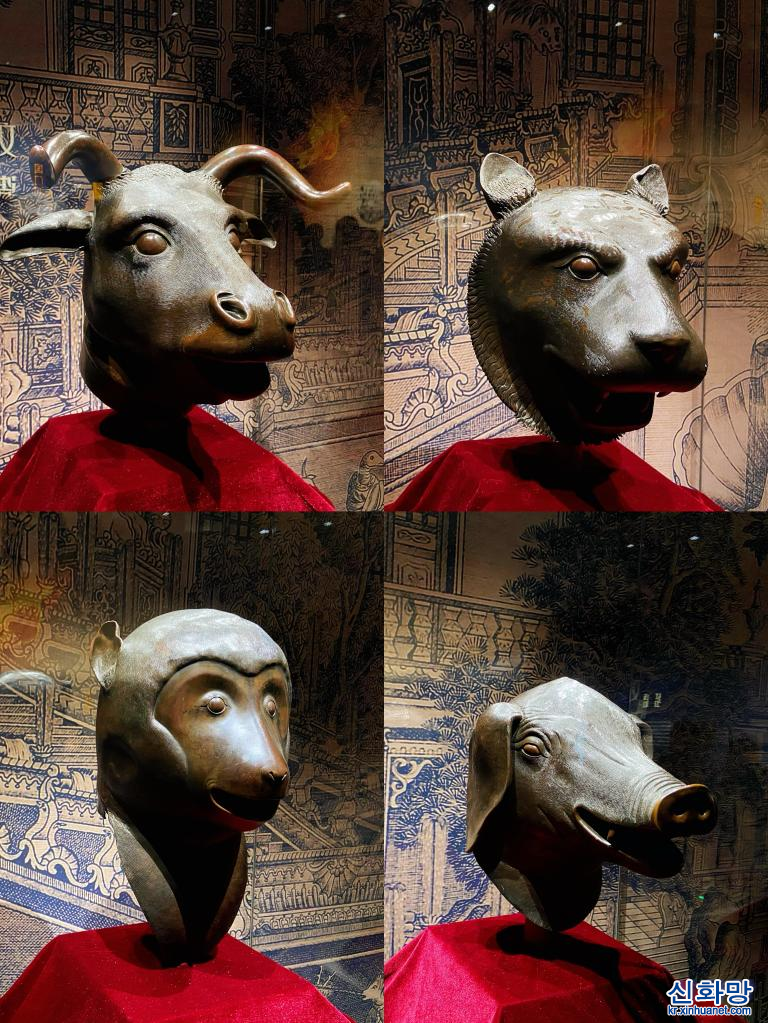 최근 중국 난징성벽발물관에서 열린 ‘원명원 동물 두상 특별전시회’에서 원명원 십이지신상 중 소와 호랑이, 원숭이, 돼지 청동 두상 및 청나라 궁궐 문화재 수 점이 선보였다.[촬영/신화사 기자 선루파(沈汝發)]