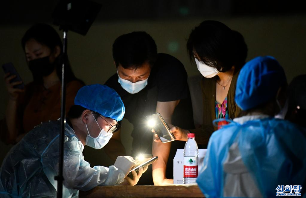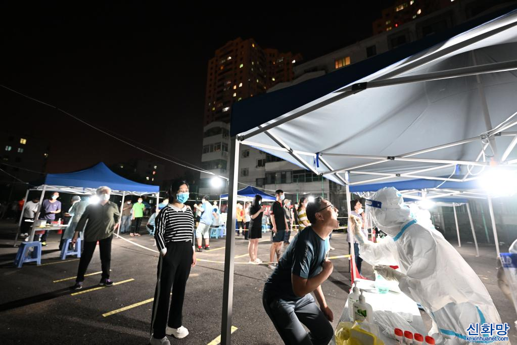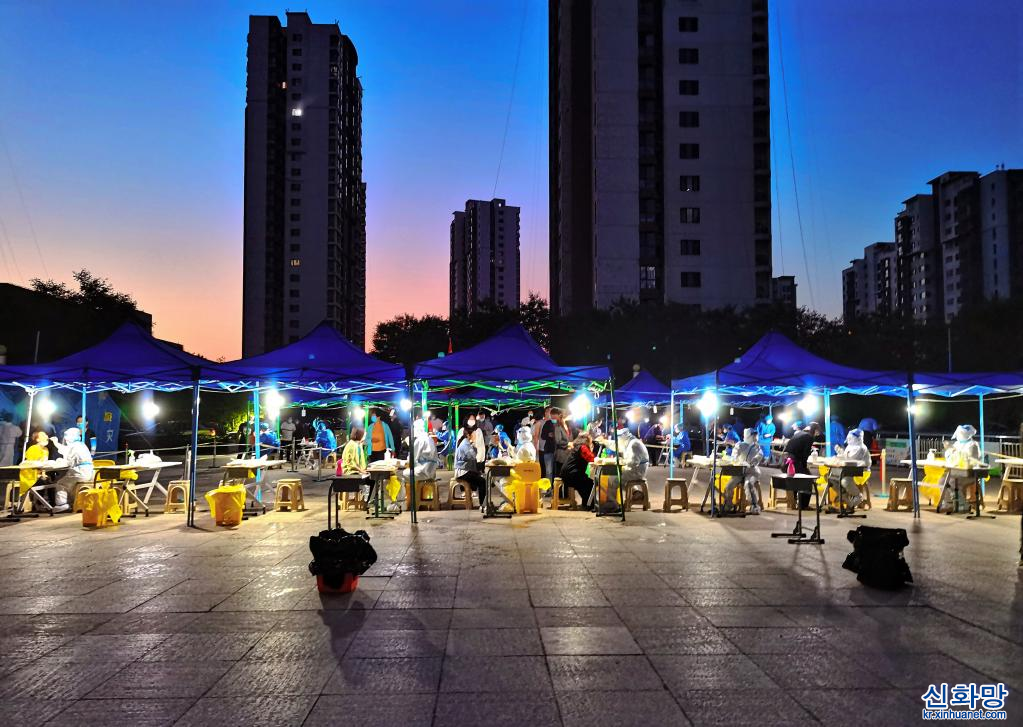 톈진시는코로나19 상황에선제적으로대응하기위해난카이(南開)구와훙차오(紅橋)구, 허시(河西)구, 허둥(河東)구, 허핑(和平)구는 20일저녁 8시부터, 나머지구(區)는 21일부터전주민을대상으로핵산(PCR) 검사를실시했다.[촬영/신화사기자 자오쯔숴(趙子碩)]