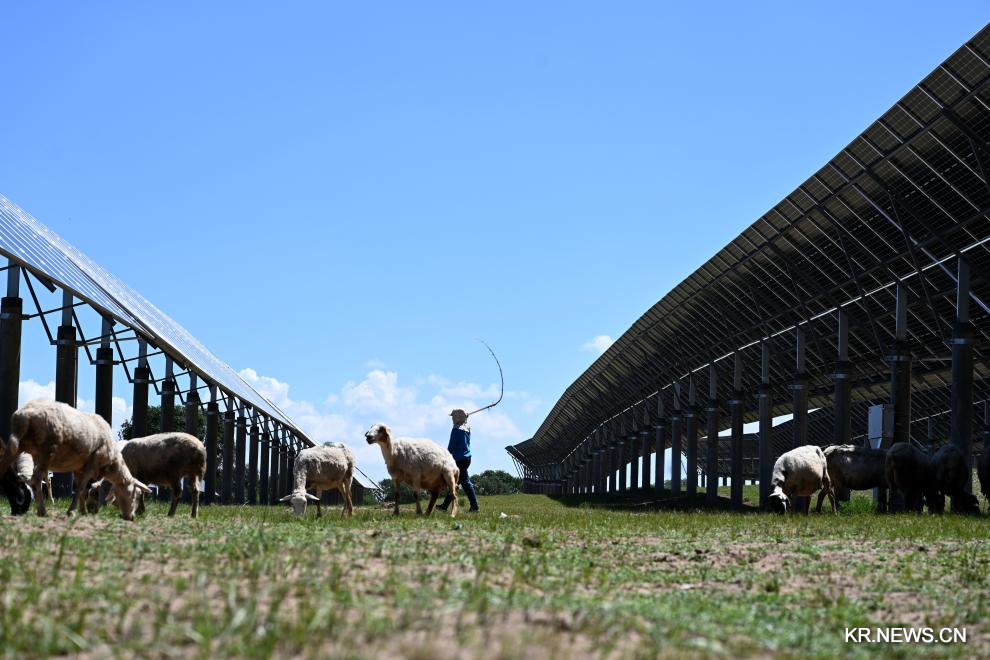 최근 수년간 허베이성 웨이창현은 현지 자원을 적극 활용해 태양광 패널 아래 토지에 목초를 심는 방식으로 초원 식생 피복률을 늘렸다. 웨이창현은 가축 방목과 태양광 발전을 동시 병행하는 사업 모델을 통해 연간 5억7천300만㎾h(킬로와트시)의 전력을 생산하며, 농목민에게 300여 개의 일자리를 제공했다. 2023.7.17