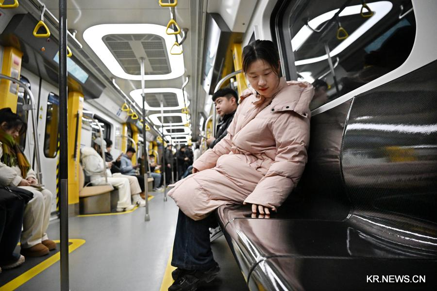 [신화망 칭다오 1월13일] 탄소섬유로 제작된 지하철 열차인 '세트로보(CETROVO) 1.0'이 최근 산둥(山東)성 칭다오(青島)시에서 정식 운행을 시작했다.