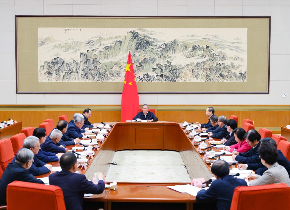 [신화망 베이징 1월22일]리창(李强) 중국 공산당 중앙정치국 상무위원 겸 국무원 총리가 24일 오후 열린 각 민주당파 중앙∙중화전국공상연합회(공상련) 책임자 및 무당파 인사 대표 좌담회를 주재하고 ‘정부공작보고(의견수렴안)’에 대한 의견과 건의를 청취했다. [촬영/신화사 기자 딩린(丁林)]