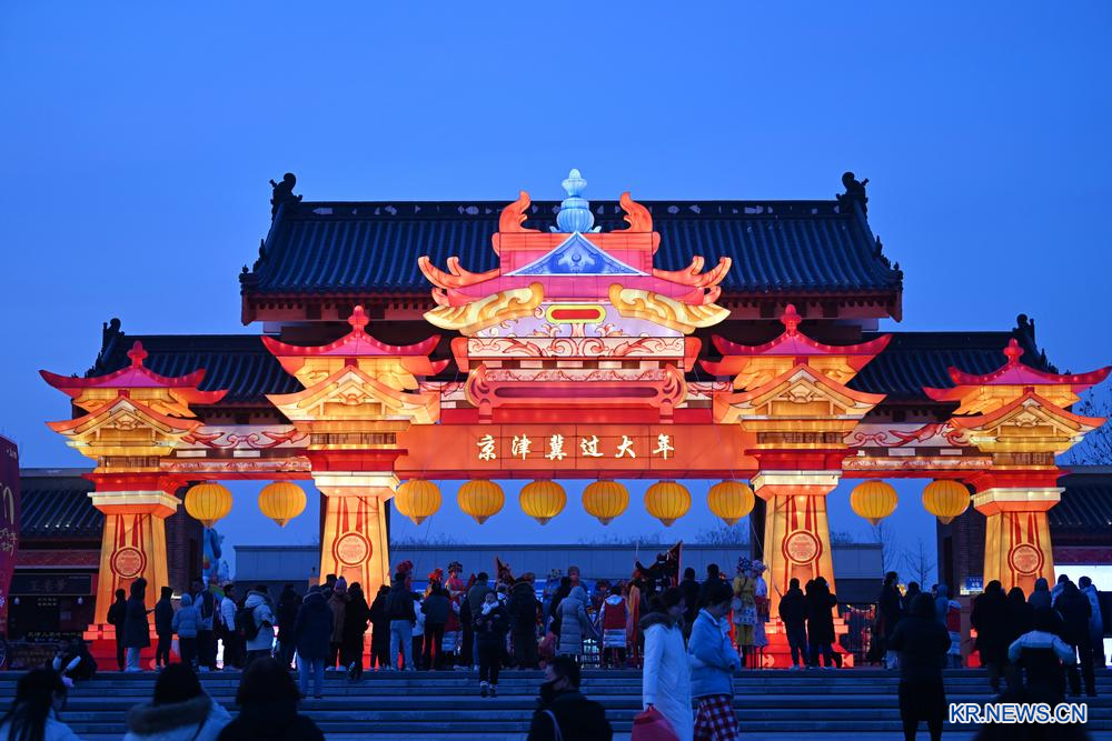 이날 대등회 점등식이 톈진(天津)시 수이시(水西)공원에서 열렸다. 이번 행사에는 산해비경 등 8가지 테마를 필두로 총 32개의 멋진 꽃등이 설치됐다. 2025.1.22