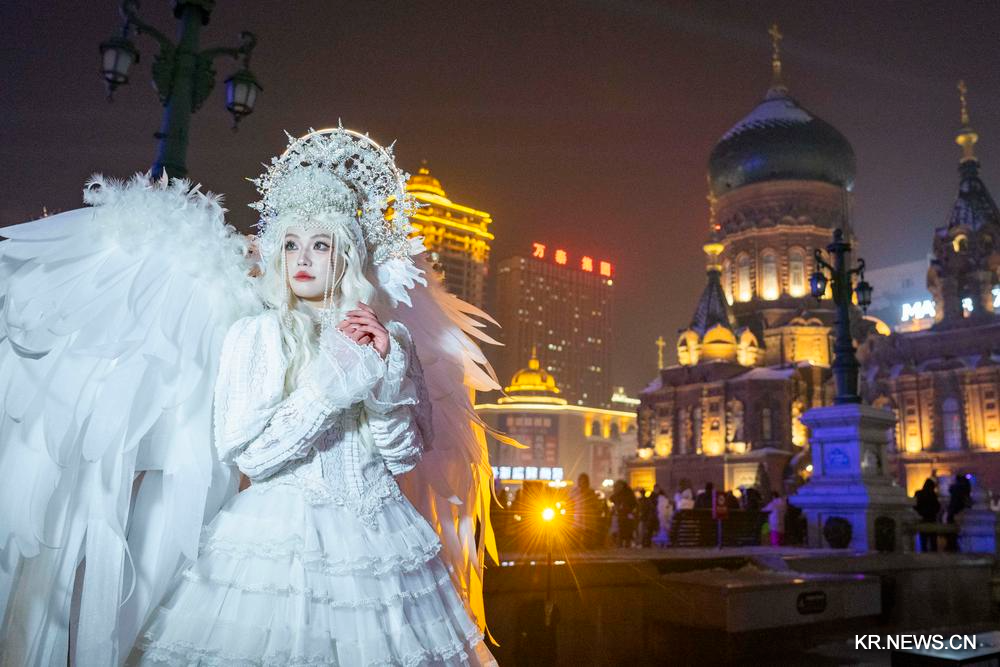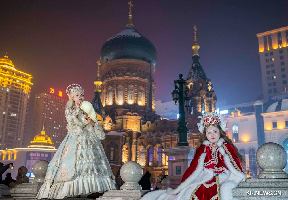 [신화망 하얼빈 1월24일] 최근 수년간 헤이룽장(黑龍江)성 하얼빈(哈爾濱)에서 빙설 문화관광이 열기를 보이면서 관광지 스냅 촬영 산업 역시 활기를 띠고 있다. 하얼빈의 대표적 관광지인 성 소피아 성당 인근에선 100명 이상의 전문 포토그래퍼가 관광객들을 대상으로 스냅사진 촬영 서비스를 제공한다.