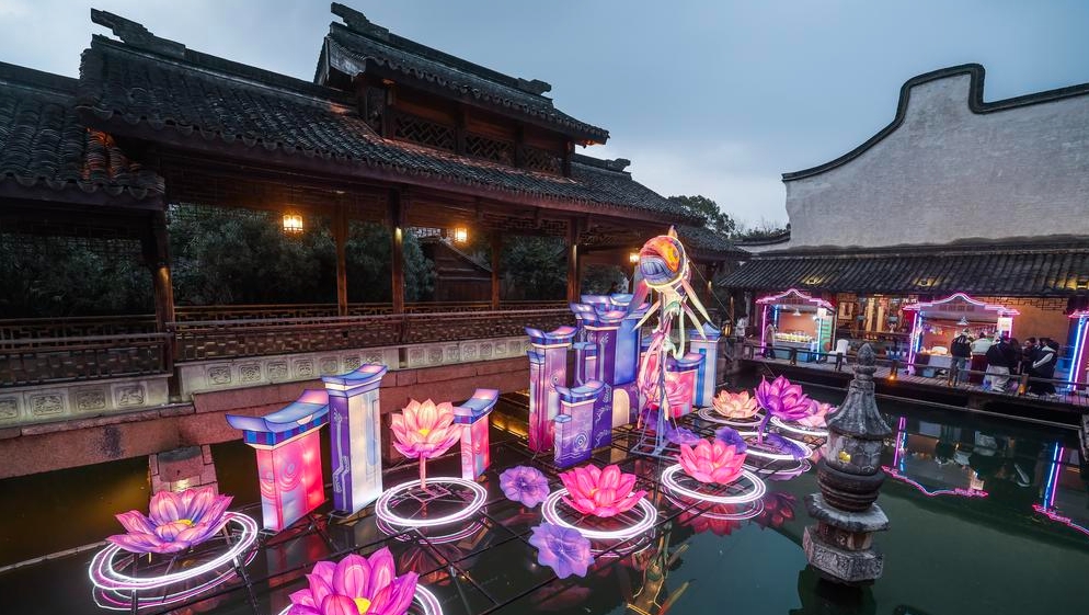 화려한 등불이 24일 네이멍구(內蒙古)자치구 후허하오터(呼和浩特)시 샤오헤이허(小黑河)를 환하게 밝히고 있다.