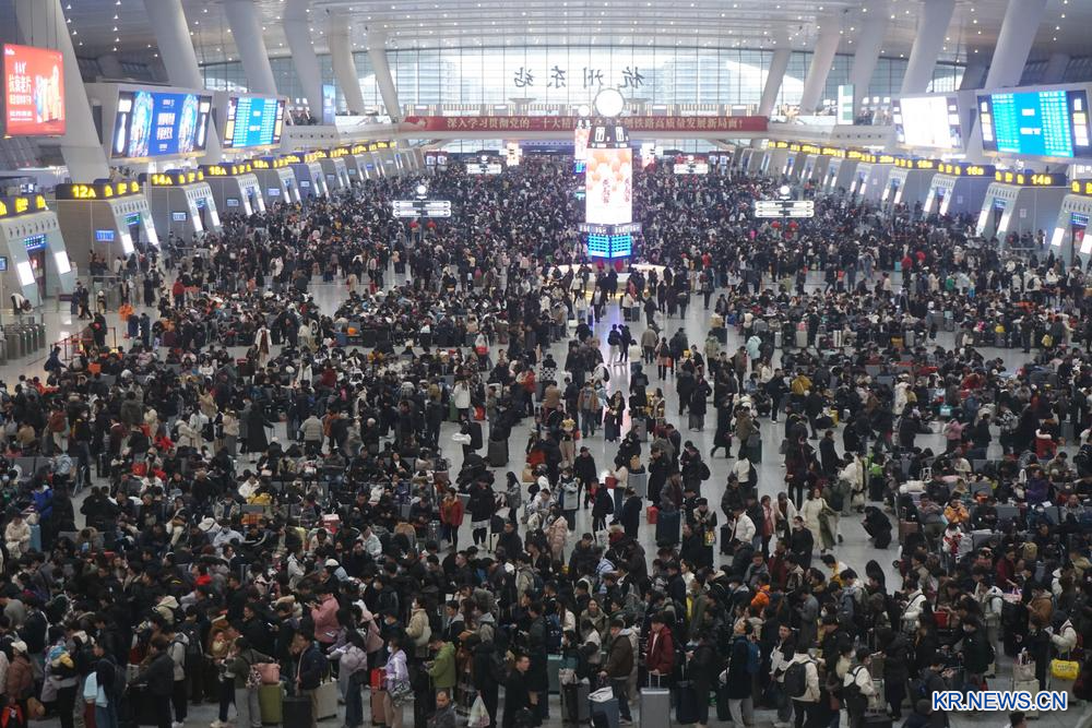 [신화망 베이징 1월26일] 춘절(春節·음력설)을 앞둔 25일 춘윈(春運·춘절 특별 수송) 여객량이 피크를 찍었다. 중국 교통운수부 데이터에 따르면 당일 중국 전역의 지역 간 인구 이동량이 2억7천만 명(연인원)을 넘어설 것으로 예상했다.