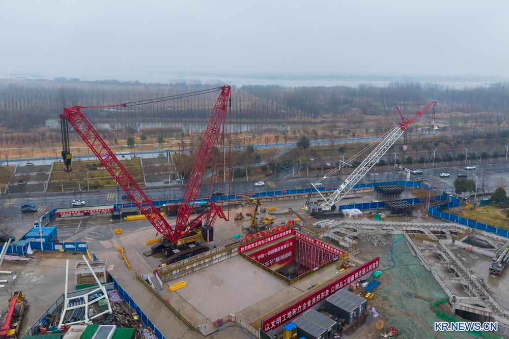 26일 우후 룽완 창장 터널 실드 굴진기 작업 현장을 드론으로 내려다 봤다. 2025.1.26