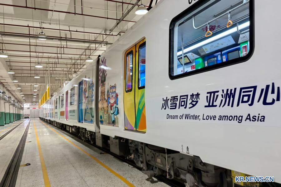 [신화망 하얼빈 1월28일] 27일 오전 9시(현지시간) 헤이룽장(黑龍江)성 하얼빈(哈爾濱) 지하철 3호선 '주멍(逐夢) 동계아시안게임호' 테마 특별 열차가 지하철 차량기지에서 출발했다. 이로써 '제9회 동계 아시안게임' 개최지인 하얼빈시에 핫플레이스가 한 곳 추가됐다.