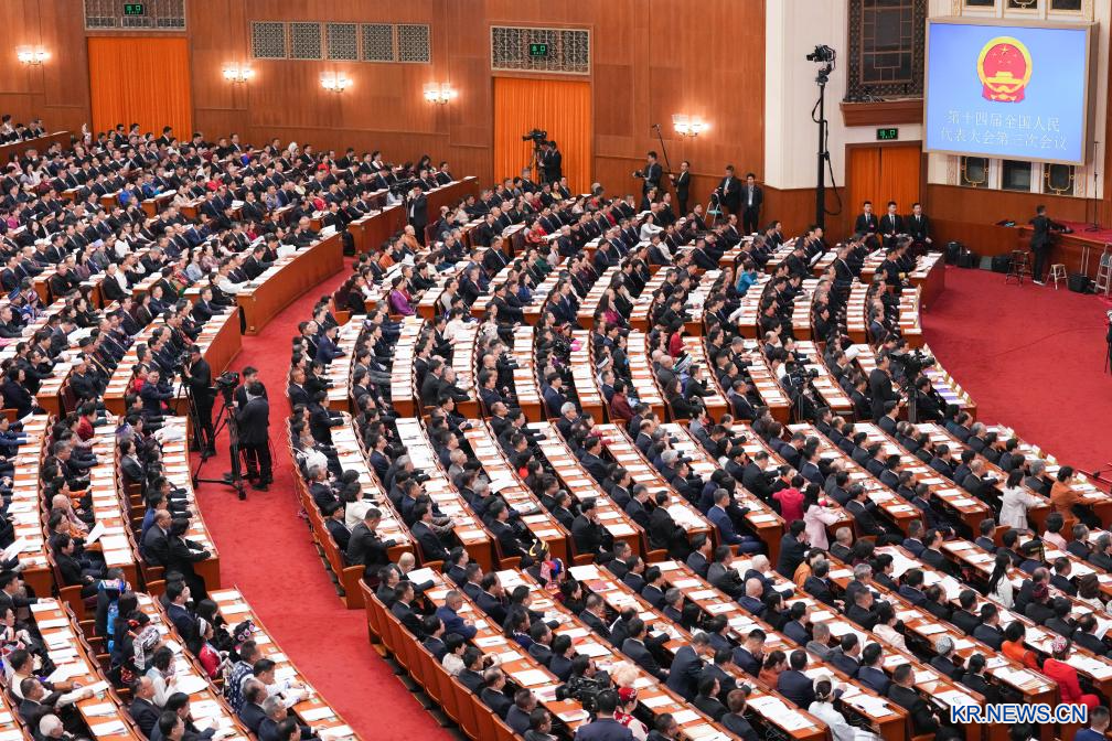 제14기 전국인민대표대회(전인대) 제3차 회의가 5일 베이징 인민대회당에서 개막했다.[촬영/신화사 기자 장링(張領)]