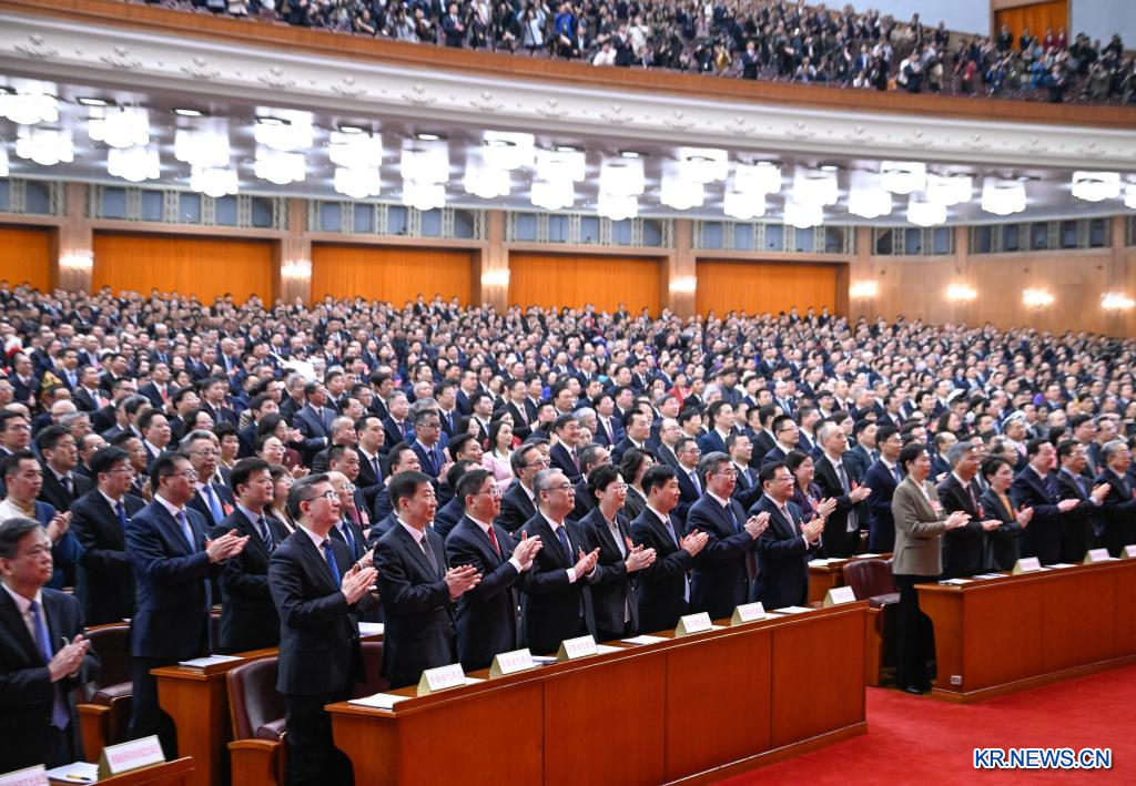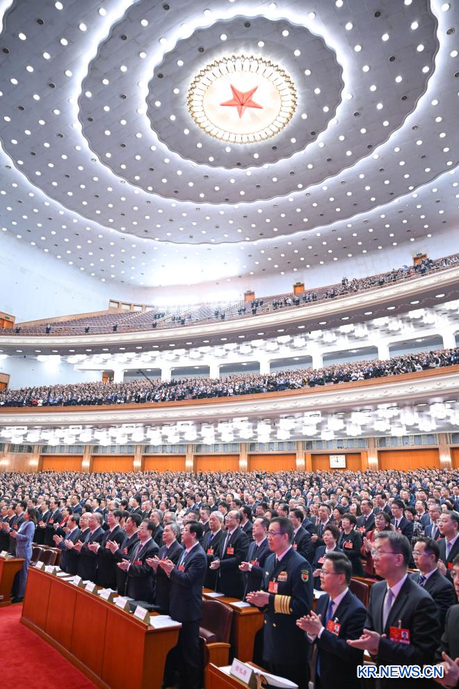 제14기 전국인민대표대회(전인대) 3차 회의는 8일 베이징 인민대회당에서 제2차 전체회의를 열었다.[촬영/신화사 기자 진량콰이(金良快)]