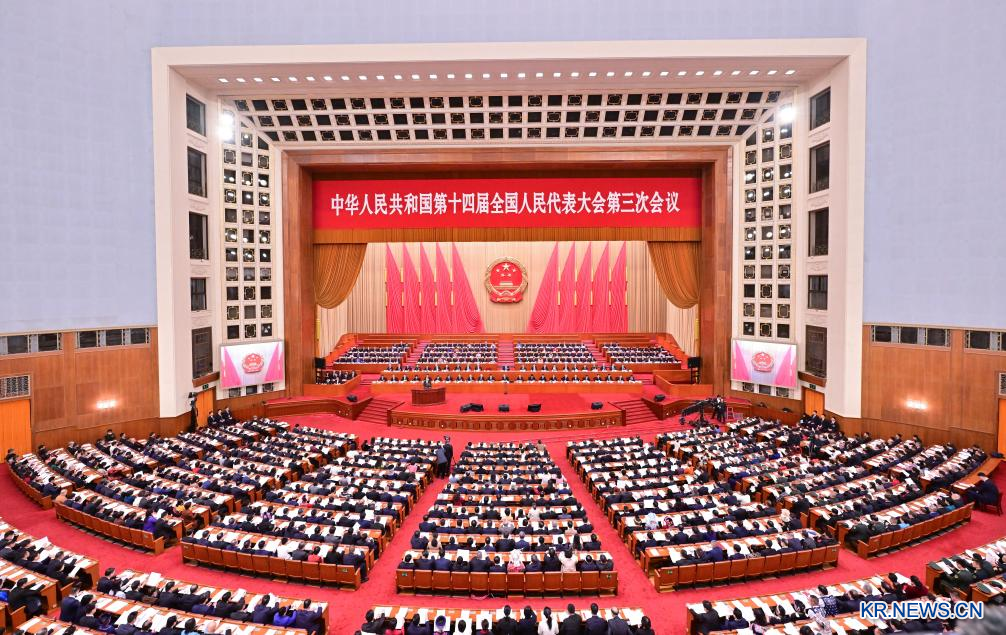 제14기 전국인민대표대회(전인대) 3차 회의는 8일 베이징 인민대회당에서 제2차 전체회의를 열었다.[촬영/신화사 기자 선훙(申宏)]