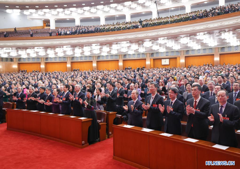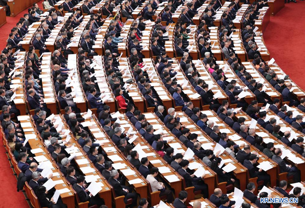 중국인민정치협상회의(정협) 제14기 전국위원회 제3차 회의가 10일 베이징 인민대회당에서 폐막했다.[촬영/신화사 기자 리허(李賀)]pagebreak