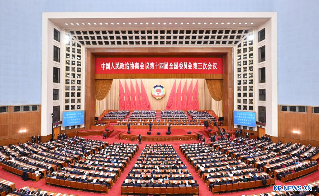 중국인민정치협상회의(정협) 제14기 전국위원회 제3차 회의가 10일 베이징 인민대회당에서 폐막했다.[촬영/신화사 기자 왕예(王曄)]