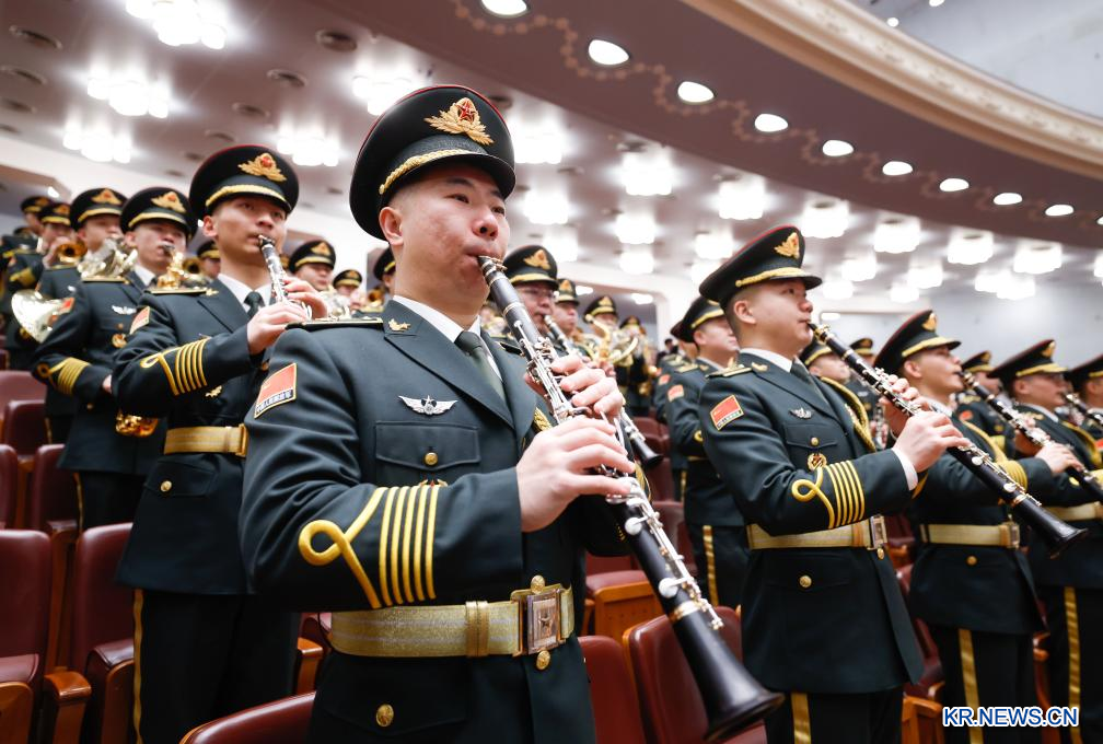 중국인민정치협상회의(정협) 제14기 전국위원회 제3차 회의가 10일 베이징 인민대회당에서 폐막했다. 군악대가 연주하고 있다. [촬영/신화사 기자 장위웨이(張玉薇)]