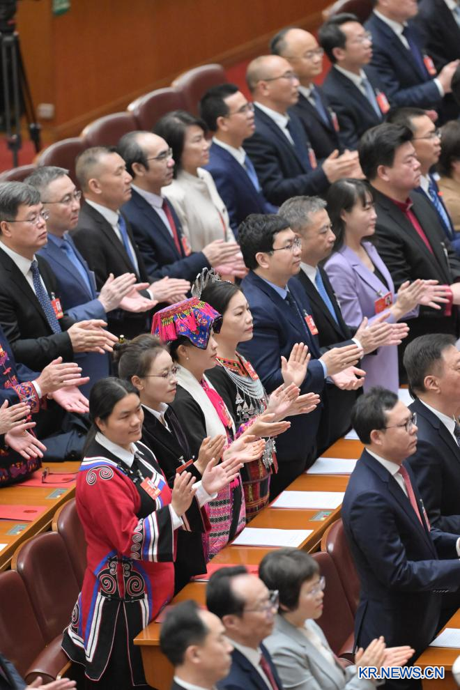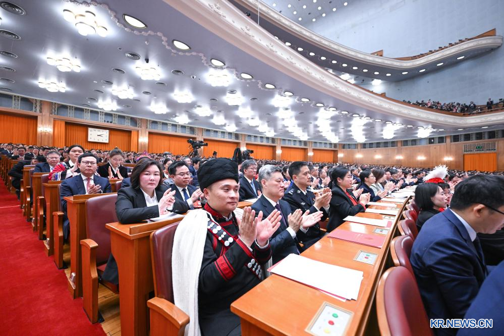 제14기 전국인민대표대회(전인대) 제3차 회의 폐막회가 11일 베이징 인민대회당에서 열렸다.[촬영/신화사 기자 쉬빙제(胥冰潔)]