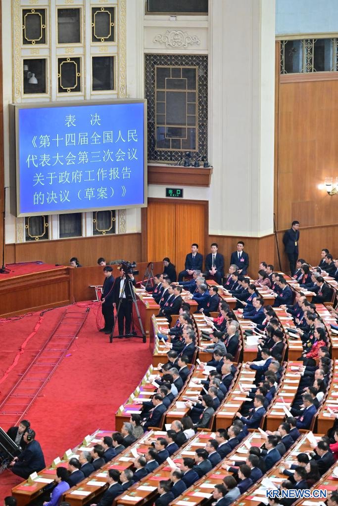 제14기 전국인민대표대회(전인대) 제3차 회의 폐막회가 11일 베이징 인민대회당에서 열렸다.[촬영/신화사 기자 황징원(黃敬文)]