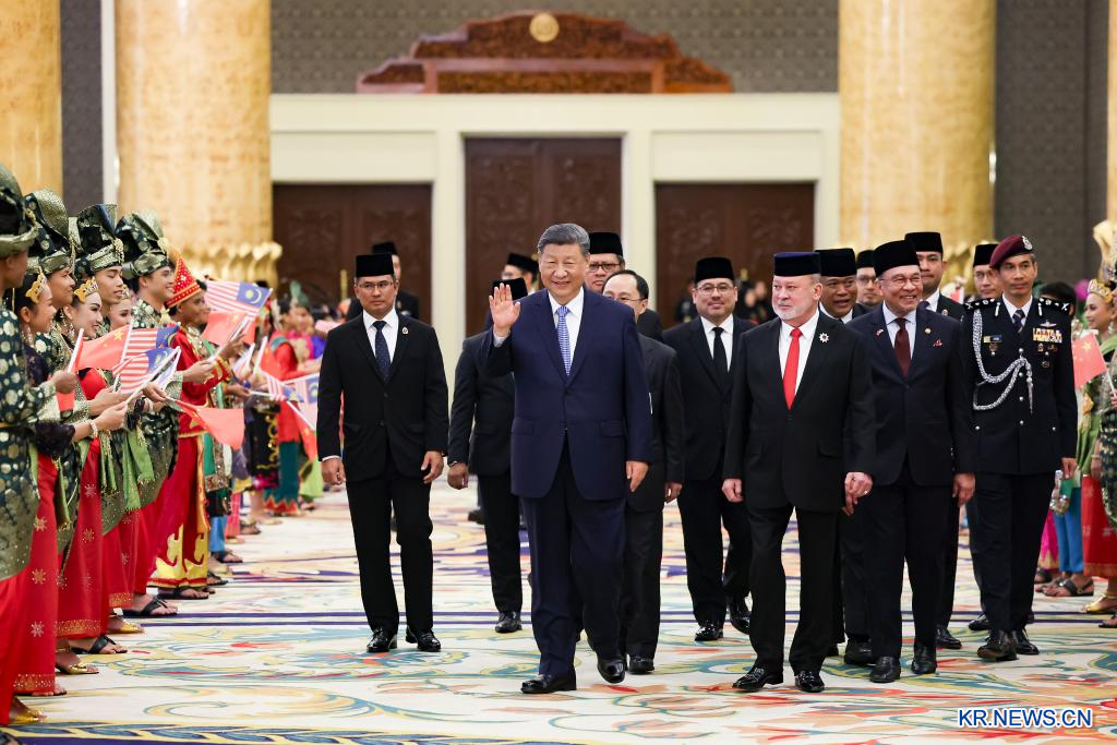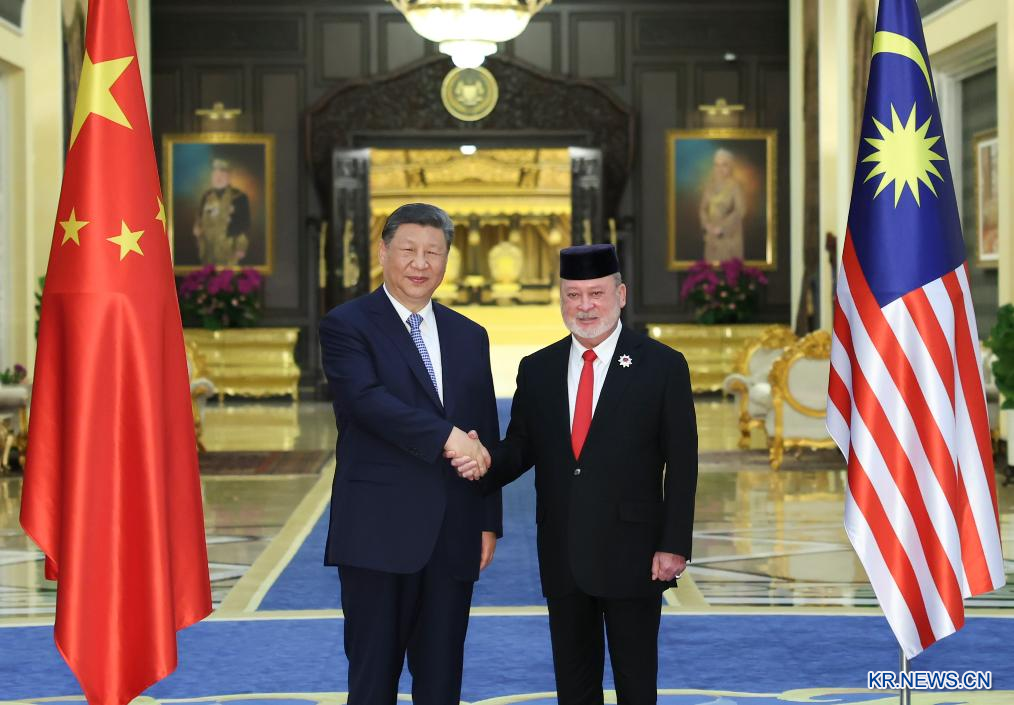 4월16일 오전 이브라힘 알마훔 이스칸다르 말레이시아 국왕이 말레이시아 국가왕궁에서 시진핑 주석과 회견했다.[촬영/신화사 기자 황징원(黃敬文)]