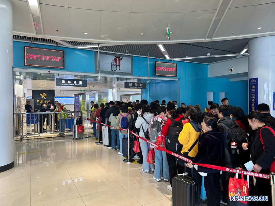 지난 14일 장쑤(江蘇)성에 위치한 롄윈강(連雲港)항 국제여객터미널 출국장이 여행객들로 북적였다. 이날 중국 여러 지역에서 온 691명의 여행객은 인천행 '허셰윈강(和諧雲港)'호를 타고 5일 일정의 한국 여행길에 올랐다.