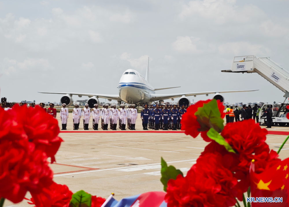 [신화망 프놈펜 4월17일] 시진핑(習近平) 중국 국가주석이 프놈펜에 도착해 캄보디아에 대한 국빈 방문을 시작했다.