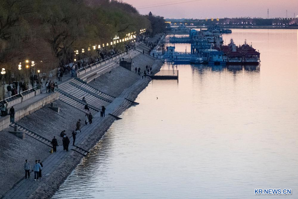 [신화망 하얼빈 4월23일] 봄을 맞아 기온이 올라가면서 쑹화장(松花江) 하얼빈(哈爾濱) 구간 강변에 나와 강바람을 맞으며 여유를 즐기는 사람들이 늘고 있다.