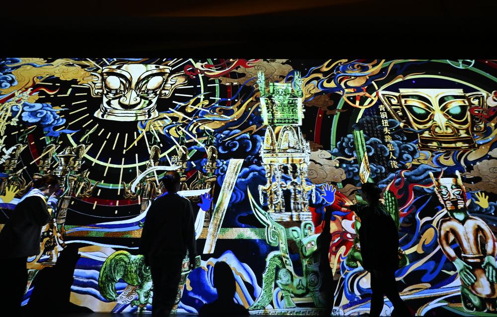 최근 '싼싱두이 몰입형 일루미네이션 예술전'이 톈진(天津)에 위치한 국가해양박물관에서 열렸다. 이번 예술전은 미술, 음악, 조명 등 디지털 멀티 미디어를 활용한 몰입형 역사 공간을 조성해 싼싱두이 유적의 예술적 미학, 청동기 문화, 제사 문화 등 콘텐츠를 선보이고 있다. 2025.4.22
