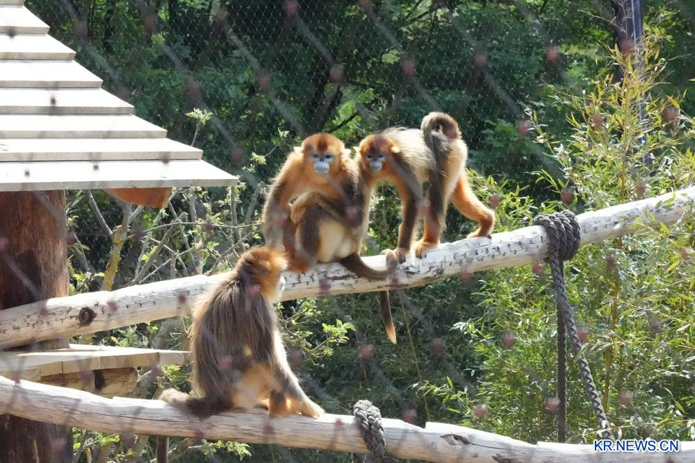 [신화망 생테냥 5월9일] 중국에서 온 황금들창코원숭이 3마리가 7일(현지시간) 프랑스 중부 소도시 생테냥에 위치한 보발 동물원에서 정식으로 공개됐다. 동물원은 온라인 투표를 통해 각각 '진더우(金豆)' '진바오(金寶)' '진화(金花)'라는 이름을 지어줬다.
