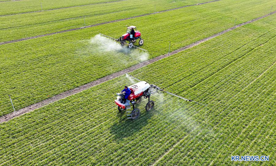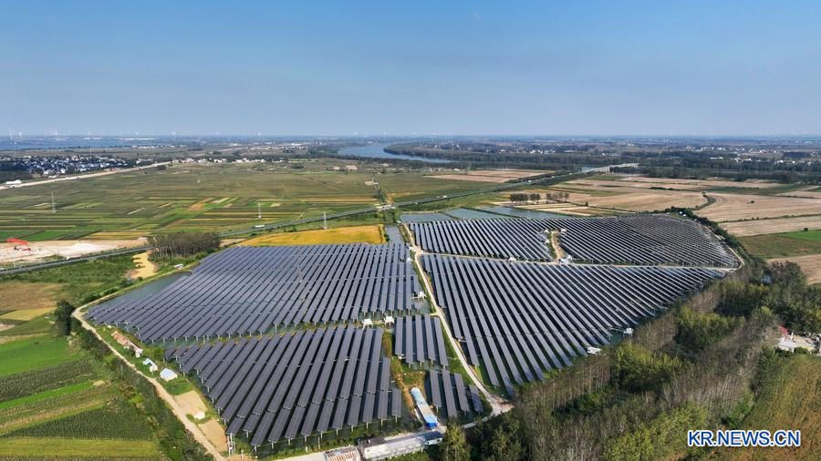 [신화망 베이징 5월16일] 더위가 시작되는 계절, 안후이(安徽)성 루안(六安)시 진자이(金寨)현 룽마(龍馬)촌에 위치한 중국과기대 태양광농업방향 연구팀이 일군 실험용 밭에는 치커리가 무럭무럭 자라고 있다. 치커리는 그늘진 장소에서도 잘 자라는 고부가가치 채소다.