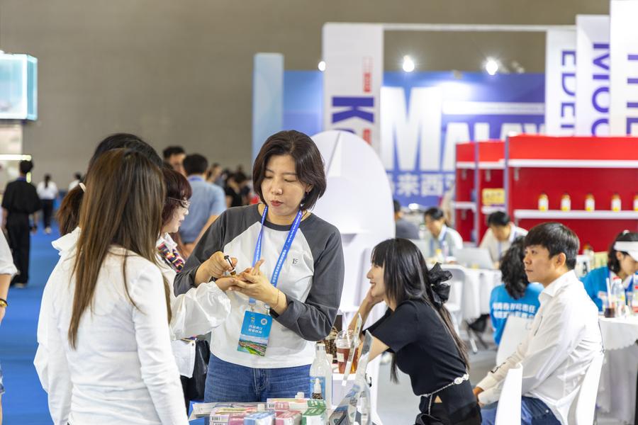 상당회에 마련된 한국 전시구역에는 미식, 뷰티, 농산물 등 다양한 한국 특색 상품이 가득 전시돼 많은 바이어의 발길을 끌어모았다.