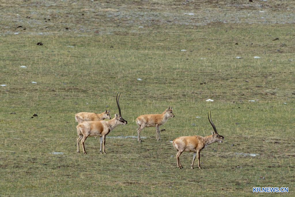 [신화망 라싸 6월12일] 짱링양(藏羚羊·시짱 영양) 암컷은 평소 서식지에서 흩어져 지내다 매년 5~7월이 되면 떼를 지어 함께 번식지로 이동한다. 관련 통계에 따르면 시짱 내 짱링양 수는 30여만 마리에 달한다.