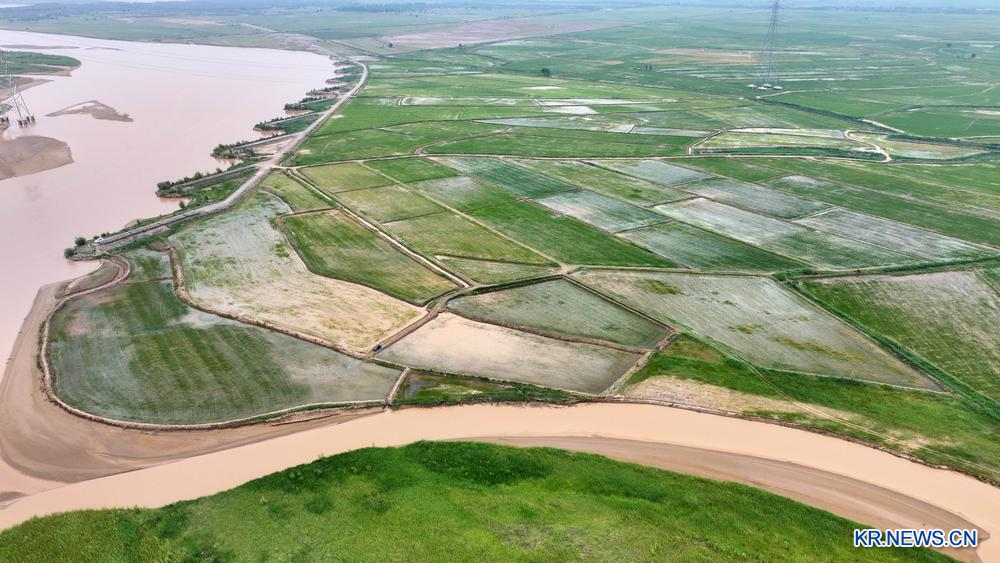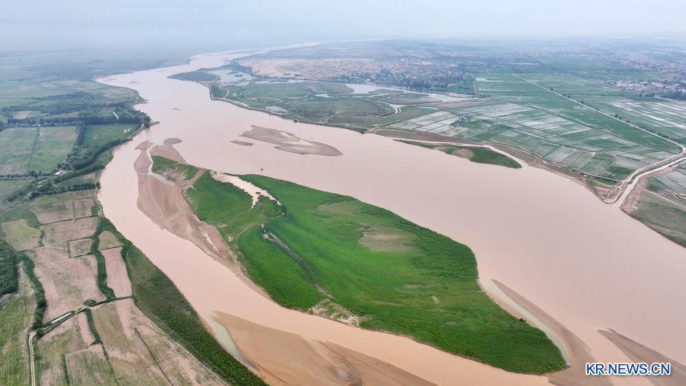 [신화망 인촨 6월23일] 황허(黃河) 닝샤(寧夏) 구간의 갯벌 습지가 푸릇푸릇 녹색 옷으로 갈아입고 생기 넘치는 아름다운 여름 풍경을 자아냈다.