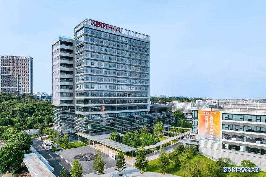 [신화망 광저우 6월30일] 약 30㎡ 규모의 테스트장에서 두 로봇이 능숙하게 회전하고 언덕을 오르고 있다. 이곳은 광둥(廣東)성 둥관(東莞)시 쑹산후(松山湖) 부근에 위치한 엑스봇파크(XbotPark) 로봇 기지로 9층에 로봇 부품 기업 다이렉트드라이브테크(本末科技·Direct Drive Tech)가 들어서 있다.