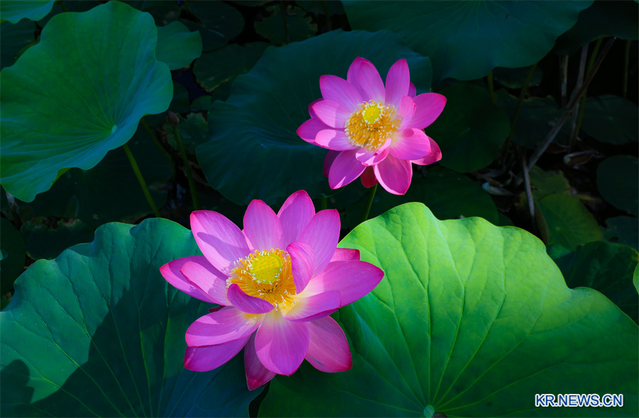 [신화망 베이징 7월10일] 여름이 무르익어가는 요즘 중국 신장 신위안(新源)현 쿼쓰우터카이러(阔斯乌特开勒)진 71단의 연꽃이 앞다투어 피어나 아름다운 화폭을 이루었다.