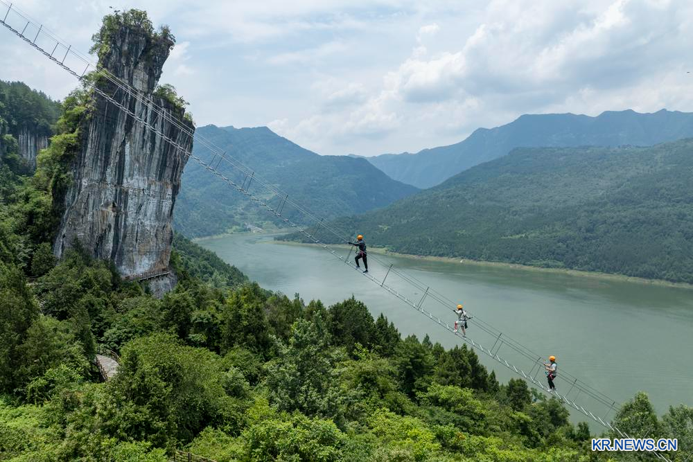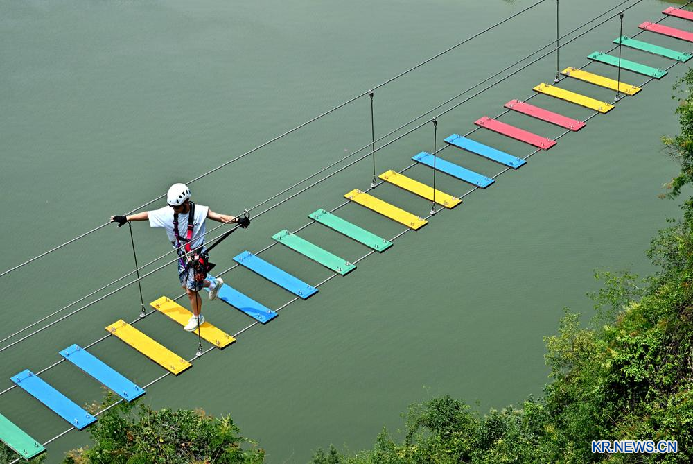 [신화망 언스 7월10일] 후베이(湖北)성 언스(恩施)투자(土家)족먀오(苗)족자치주는 최근 수년간 천혜의 자연을 활용해 래프팅, 암벽 등반 등 다양한 스포츠 기지를 조성했다. 여기에 각종 스포츠 대회와 팀 전지훈련을 유치해 스포츠 산업과 향촌 관광을 결합함으로써 향촌 진흥을 이끌고 있다.