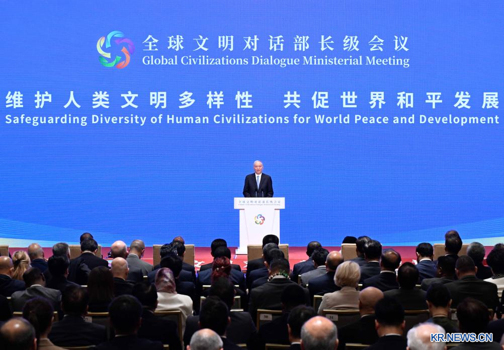 [신화망 베이징 7월11일] 글로벌문명대화 장관급 회의가 10일 오후 베이징에서 개막했다. 중국 공산당 중앙정치국 상무위원인 차이치(蔡奇) 중앙서기처 서기가 개막식에 참석해 기조연설을 했다.[촬영/신화사 기자 선훙(申宏)]