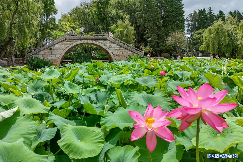 [신화망 쿤밍 7월11일] 한여름에 접어들자 윈난(雲南)성 쿤밍(昆明)시 다관(大觀)공원의 연꽃이 꽃망울을 활짝 터뜨렸다. 이에 공원에는 많은 시민과 관광객의 발길이 이어지고 있다.