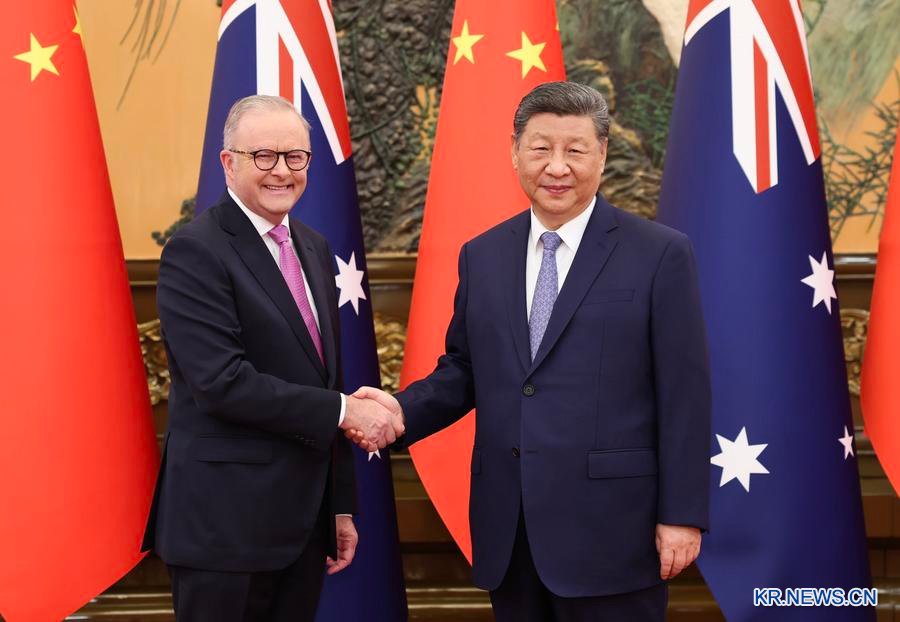 [신화망 베이징 7월16일] 시진핑(習近平) 중국 국가주석이 15일 오전 베이징 인민대회당에서 중국을 공식 방문한 앤서니 앨버니지 호주 총리와 회견했다.