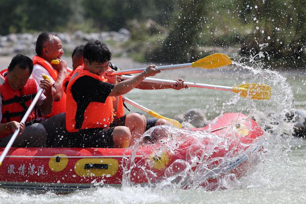 최근 간쑤(甘肅)성 룽난(隴南)시 여러 지역에서 고온 현상이 발생했다. 이에 많은 관광객이 후이(徽)현에 위치한 자링(嘉陵)강 협곡을 찾아 래프팅을 체험하며 더위를 식히고 있다.