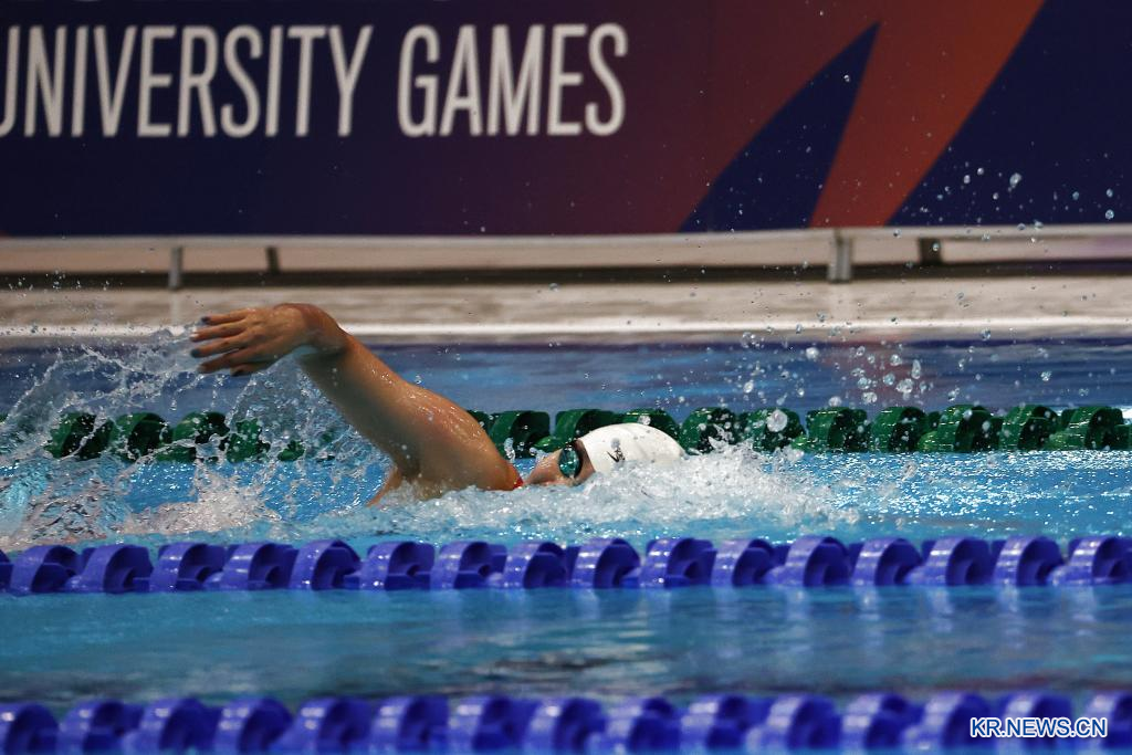 아이옌한(艾衍含∙중국)이 19일(현지시간) 독일 베를린에서 열린 2025 라인-루르 하계 세계대학경기대회(유니버시아드) 여자 100m 자유형 결승에서 우승을 차지했다. 류수한(劉姝含)은 7위를 차지했다.[촬영/신화사 기자 두저위(杜哲宇)]pagebreak
