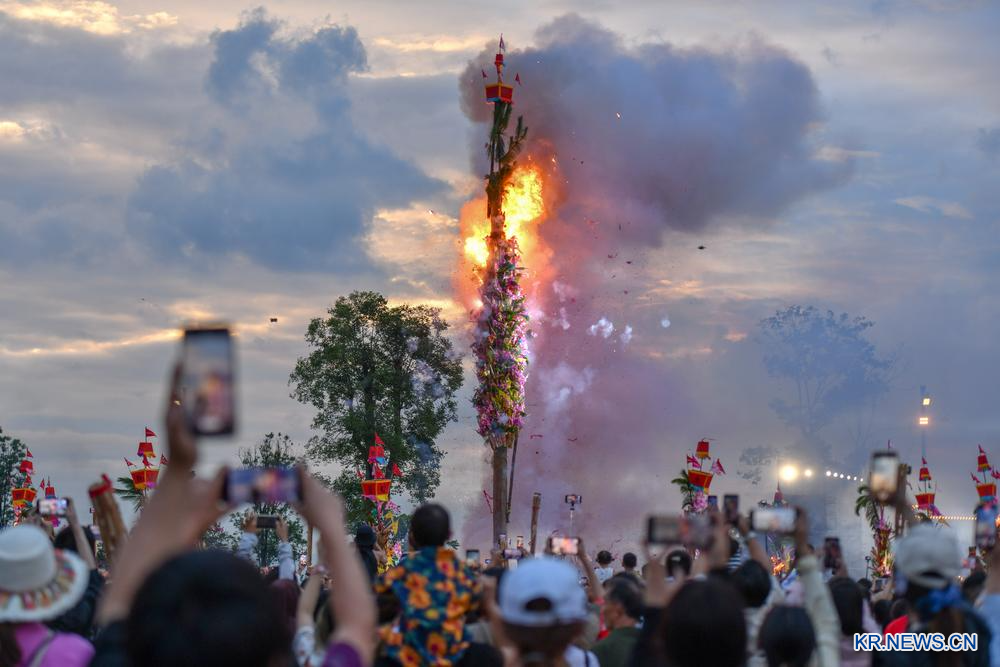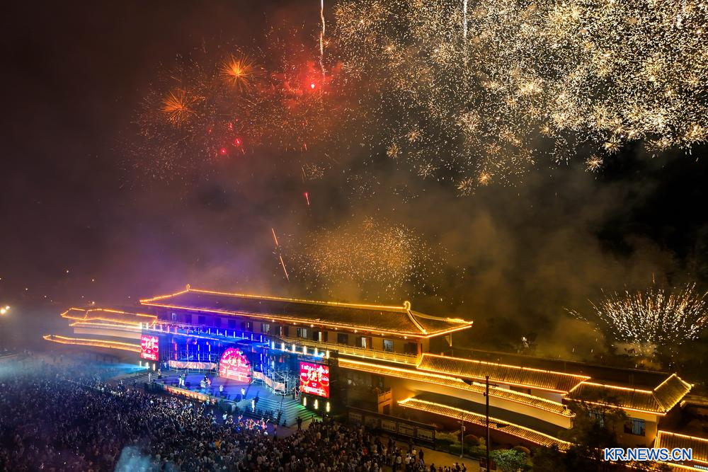 [신화망 웨이산 7월21일] '2025년 웨이산(巍山) 횃불 축제'가 19일 저녁(현지시간) 윈난(雲南)성 웨이산 이(彝)족후이(回)족자치현의 성화광장에서 개막했다. 문화·예술 공연, 캠프파이어, 불꽃놀이 등이 펼쳐진 개막식 현장에서는 수만 명의 현지 주민들과 관광객들이 함께 축제를 즐겼다.