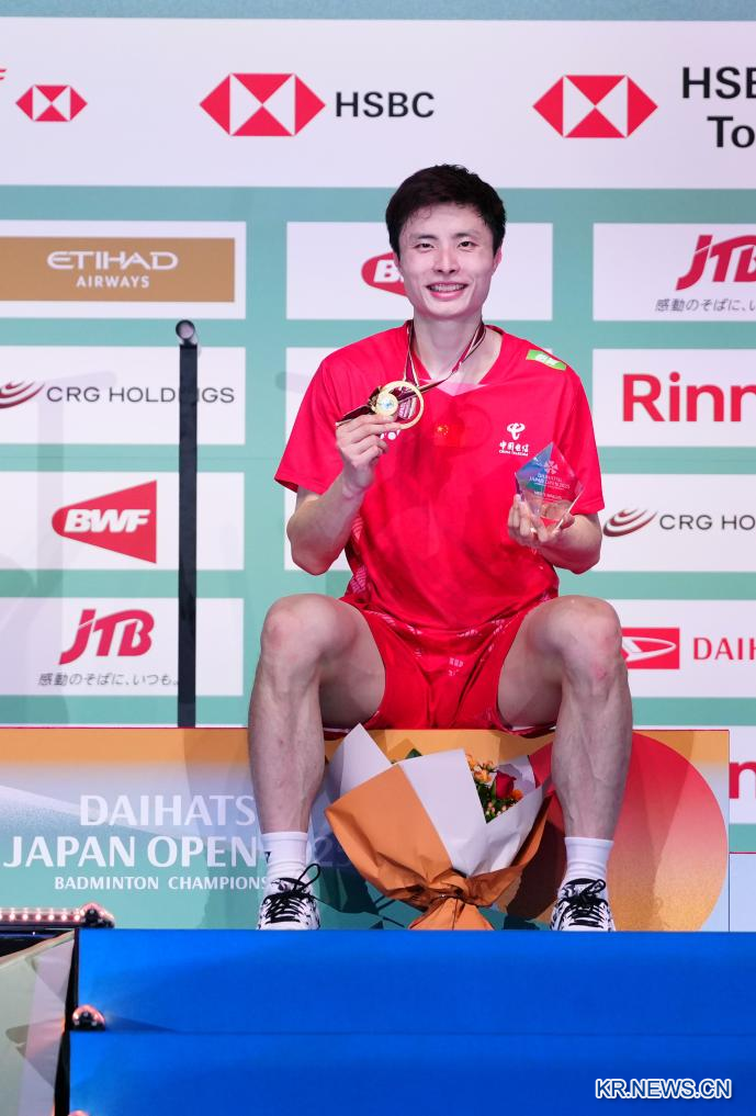 중국 배드민턴 선수 스위치(石宇奇)가 20일 일본 도쿄에서 열린 2025 세계배드민턴연맹(BWF) 월드투어 일본오픈 남자단식 결승에서 알렉스 라니어(프랑스)를 2대 0으로 꺾고 우승을 차지했다.[촬영/신화사 기자 자하오청(賈浩成)]