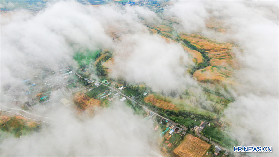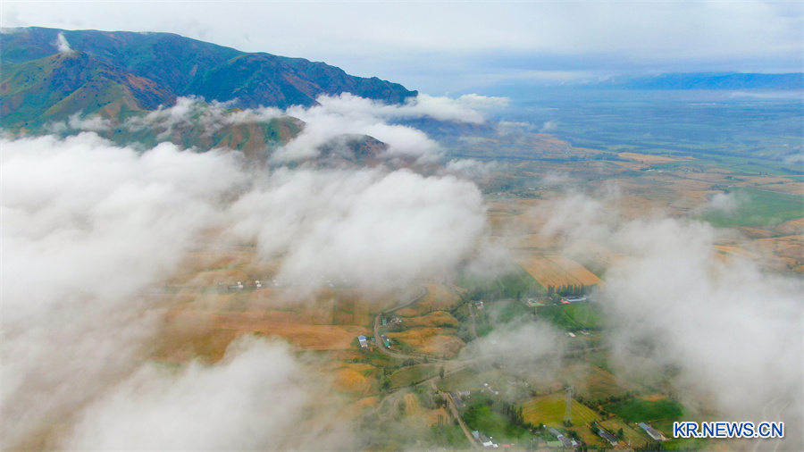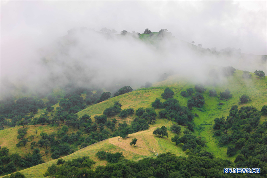 최근 비가 그친 후 신장위구르자치구 신위안(新源)현 북산에 보기 드문 운무 경관이 펼쳐졌다. 운무가 춤추듯 넘실거리며 산과 숲을 휩싸고 때로는 짙게, 때로는 옅게 산봉우리와 초목을 물들이면서 몽환적인 풍경을 연출했다.