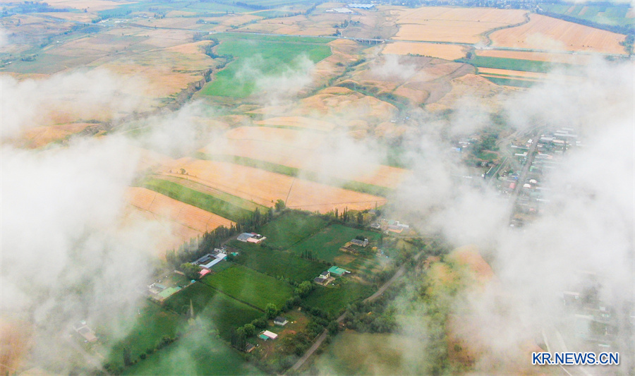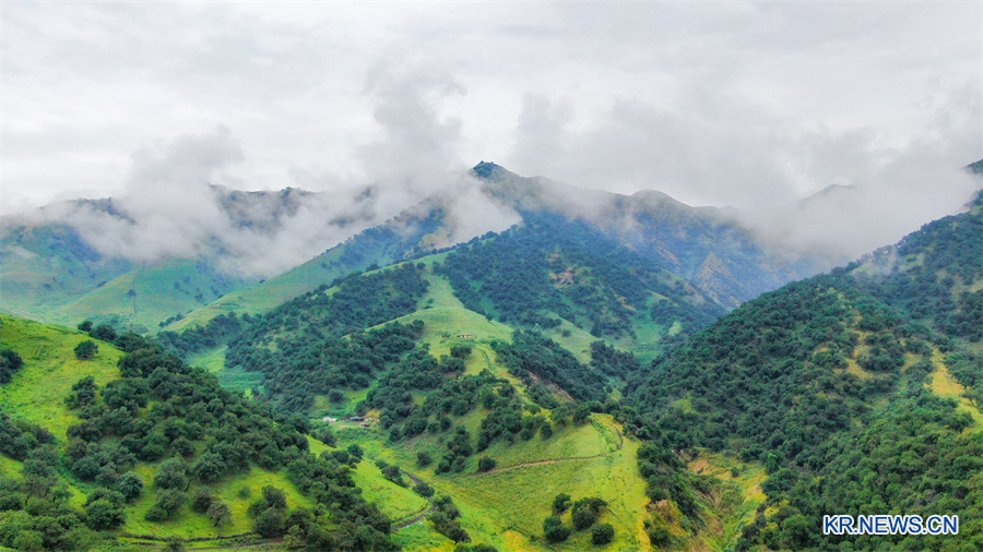 [신화망 베이징 7월23일] 최근 비가 그친 후 신장위구르자치구 신위안(新源)현 북산에 보기 드문 운무 경관이 펼쳐졌다. 운무가 춤추듯 넘실거리며 산과 숲을 휩싸고 때로는 짙게, 때로는 옅게 산봉우리와 초목을 물들이면서 몽환적인 풍경을 연출했다.