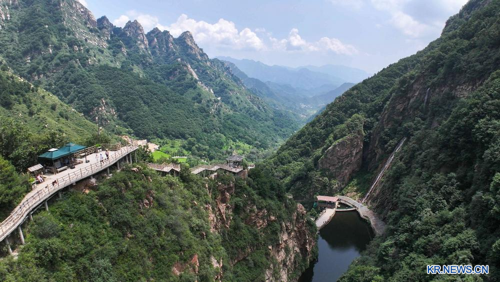 [신화망 스자좡 7월23일] 22일 드론으로 내려다본 허베이(河北)성 링서우(靈壽)현의 타이항산(太行山) 만산화(漫山花)계곡.