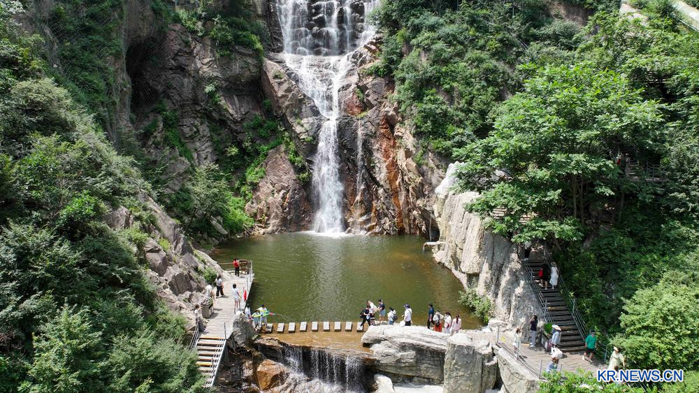 절기상 대서(大暑)였던 22일, 허베이(河北)성 스자좡(石家莊)시에 위치한 타이항산(太行山)의 산맥이 싱그러운 초록빛을 내뿜으며 그림 같은 풍경을 연출했다.