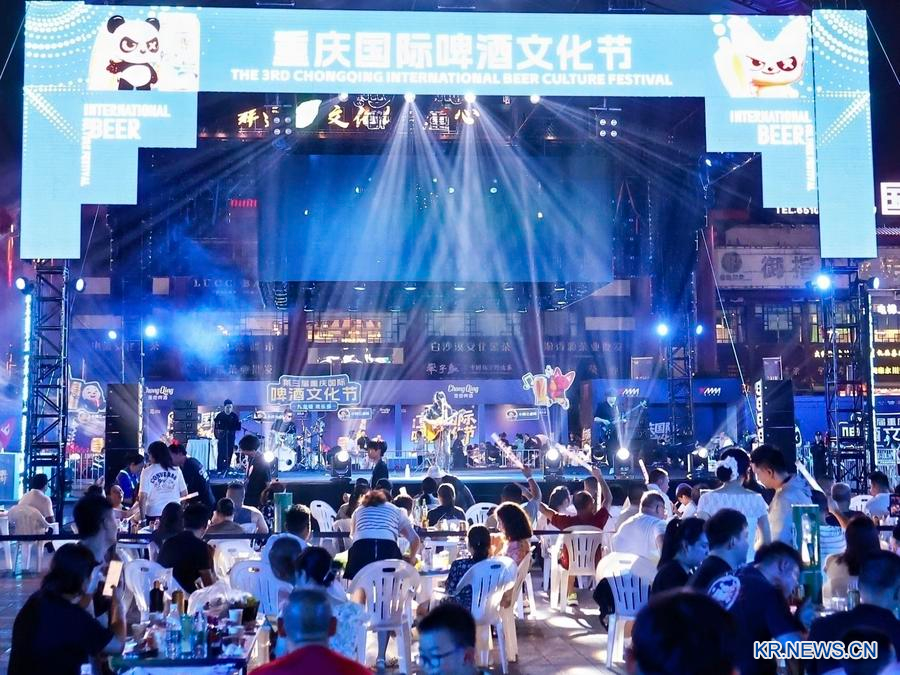 충칭은 '2025 충칭 나이트 라이프 페스티벌' 및 '제3회 충칭 국제 맥주 문화 축제'로 열기가 뜨겁다. 양자핑(楊家坪) 보행자 거리엔 화려한 조명이 반짝이고 맥주와 훠궈 향기가 가득하며, 중앙 무대 앞은 라이브 공연을 즐기는 수많은 인파로 북적인다.