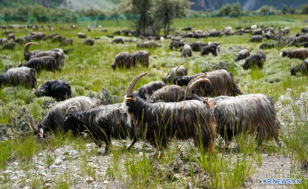 [신화망 창더우 7월23일] 시짱(西藏) 창두(昌都)시 볜바(邊壩)현은 빙하가 녹은 물이 흐르고 약초 자원이 풍부해 흑산양이 자라기에 천혜의 자연환경을 갖추고 있다. 볜바현은 흑산양 산업 육성을 위해 지난 2016년부터 총 1천196만 위안(약 23억828만원)을 투입해 흑산양 사육기지를 조성했으며, 현재 기지 내에 우량 종모양이 6천200마리 이상 사육되고 있다. 또한 인근의 싼써(三色)호 관광지와 연계해 요식업 서비스를 발전시켜 주민들의 소득 증대를 이끌고 있다.